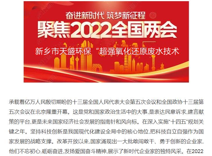中國高新技術(shù)網(wǎng)發(fā)布:《關(guān)注:解碼科技創(chuàng)新》——新鄉(xiāng)市天盛環(huán)?!俺瑥娧趸€原廢水處理技術(shù)”